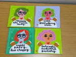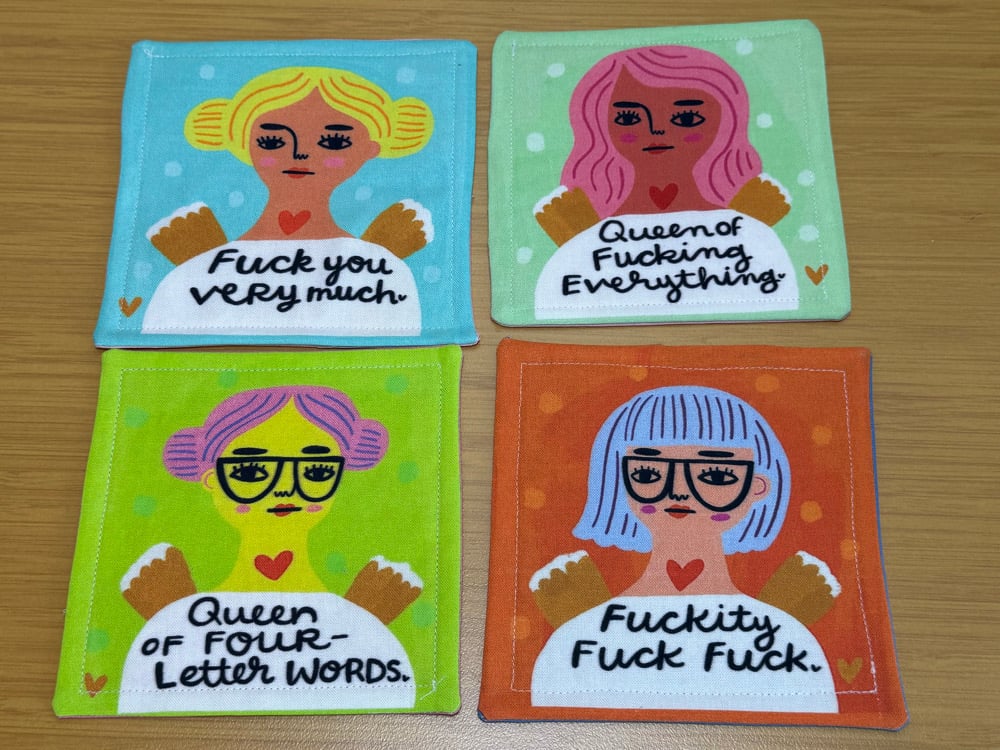 4.5 inch coasters—Imperfecly perfect coasters with a message. these coasters may have slight size variations or other little imperfections —the back is plain fabric